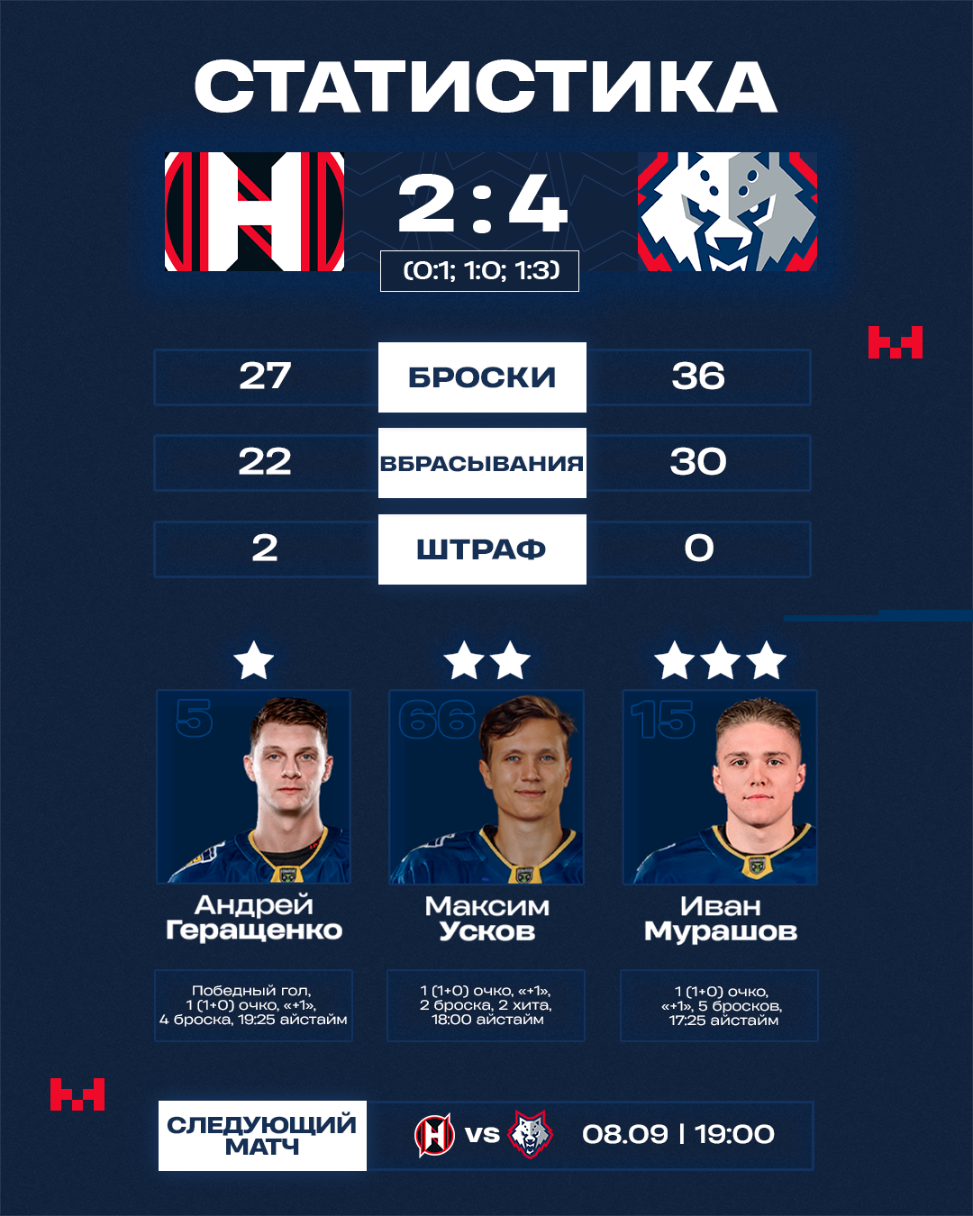 0:1 – 13:28 Мурашов (Шевченко, Бейзак)
