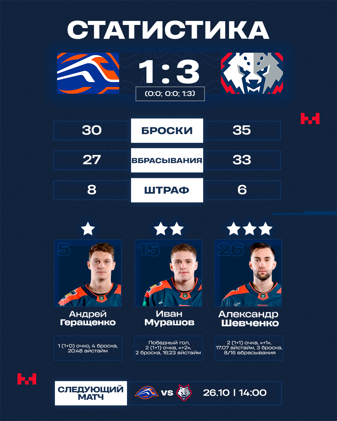 0:1 – 50:10 Геращенко (Шевченко, Усков), 2ГБ