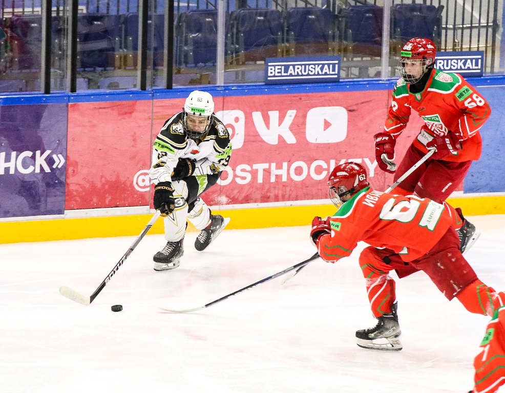 И до, и после результативного отрезка «Белсталь» неплохо созидала, но не лучшим образом действовала в завершении. Юноши время от времени опасно огрызались – в таких ситуациях выручал Исаенко, сделавший 16 спасений после 17 бросков в створ. Свой гол хозяева все-таки отыскали в середине заключительного периода, лишив Данилу шатаута, но через три минуты Боурош вернул разницу и максимально приблизил «сталеваров» к победе. Реальных шансов посягнуть на нее «Белсталь» юношам больше не давала.