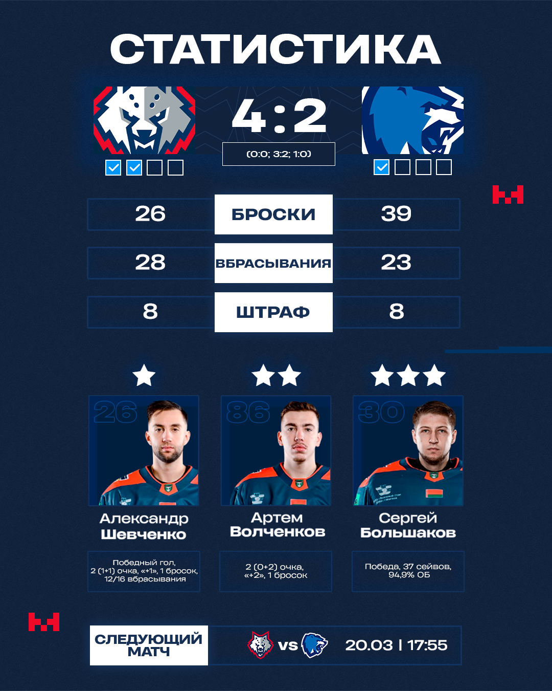 3:2 – 39:19 Шевченко (Волченков, Тимирев)