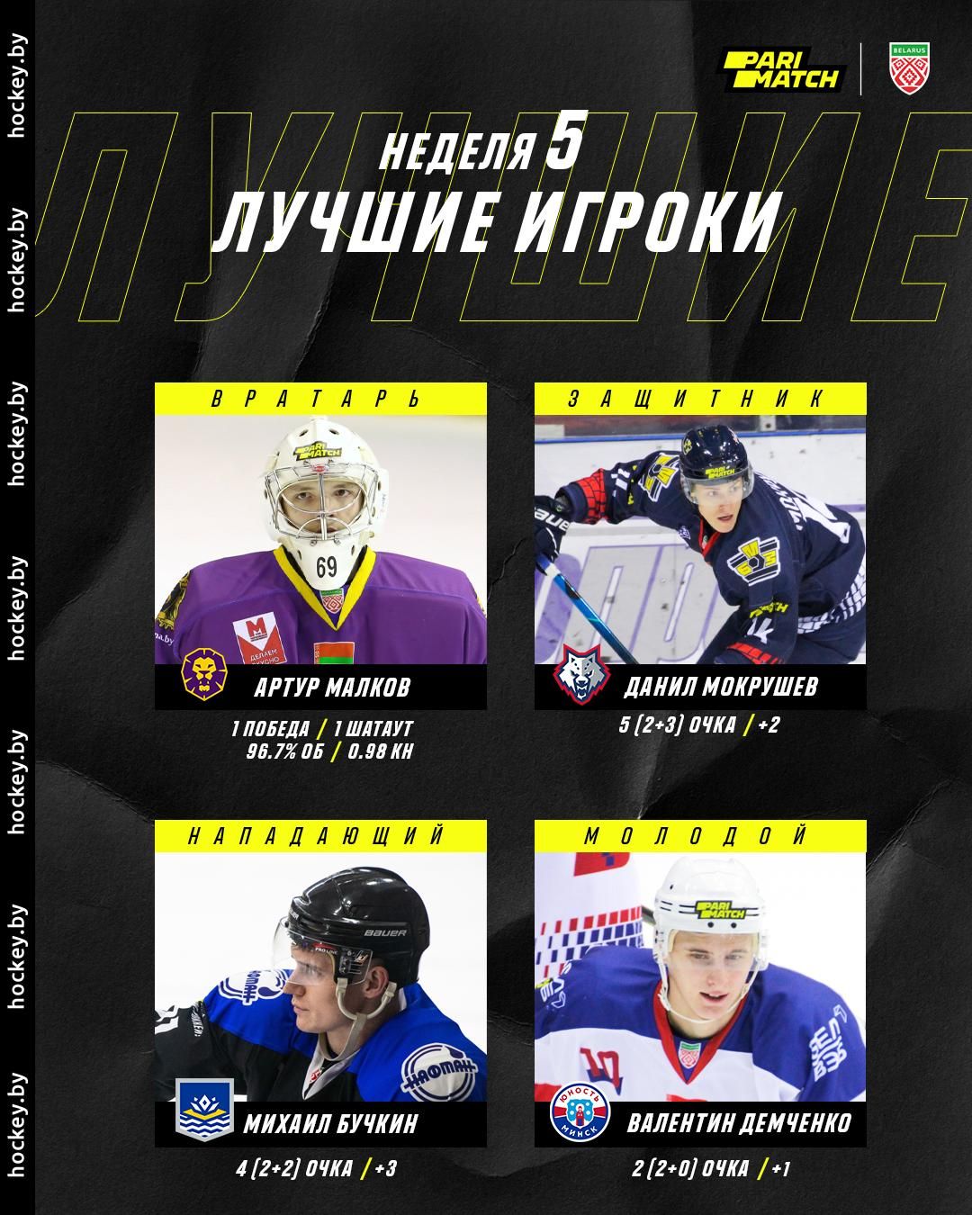 Защитник Данил Мокрушев признан лучшим в своем амплуа по итогам семидневки. Игрок обороны набрал 5 (2+3) очков в трех встречах, набирал результативные баллы во всех матчах и ни разу не позволил соперникам отличиться, когда команды играли в равных составах.