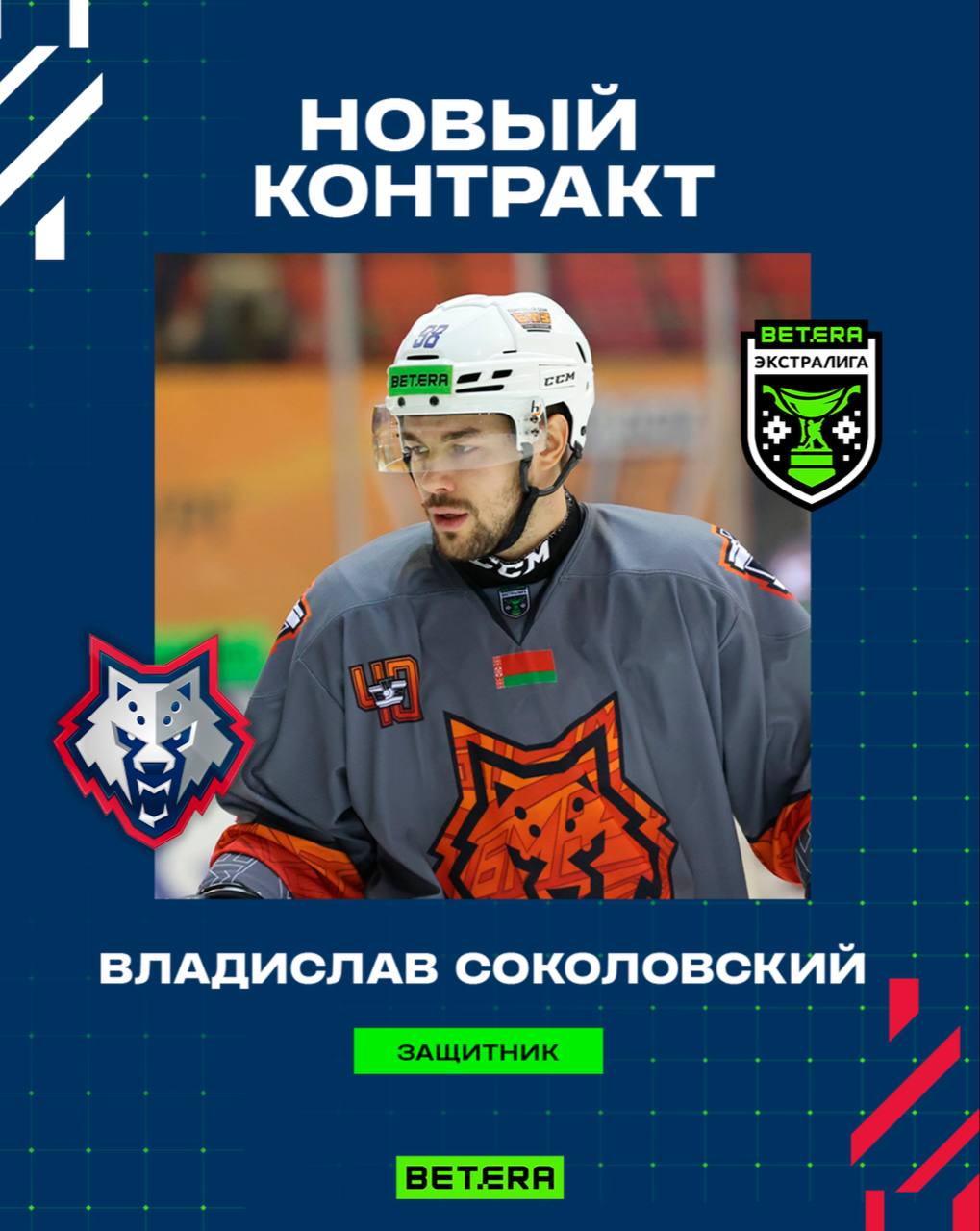 Соколовский проведет в Жлобине третий год подряд и четвертый в карьере. Ранее он защищал цвета «волков» в чемпионате-2020/21. В сезоне-2024/25 Владислав сыграл за команду во всех матчах. Всего на его счету 12 (2+10) очков в 59 играх при 43 минутах штрафа и показателе полезности «+5».