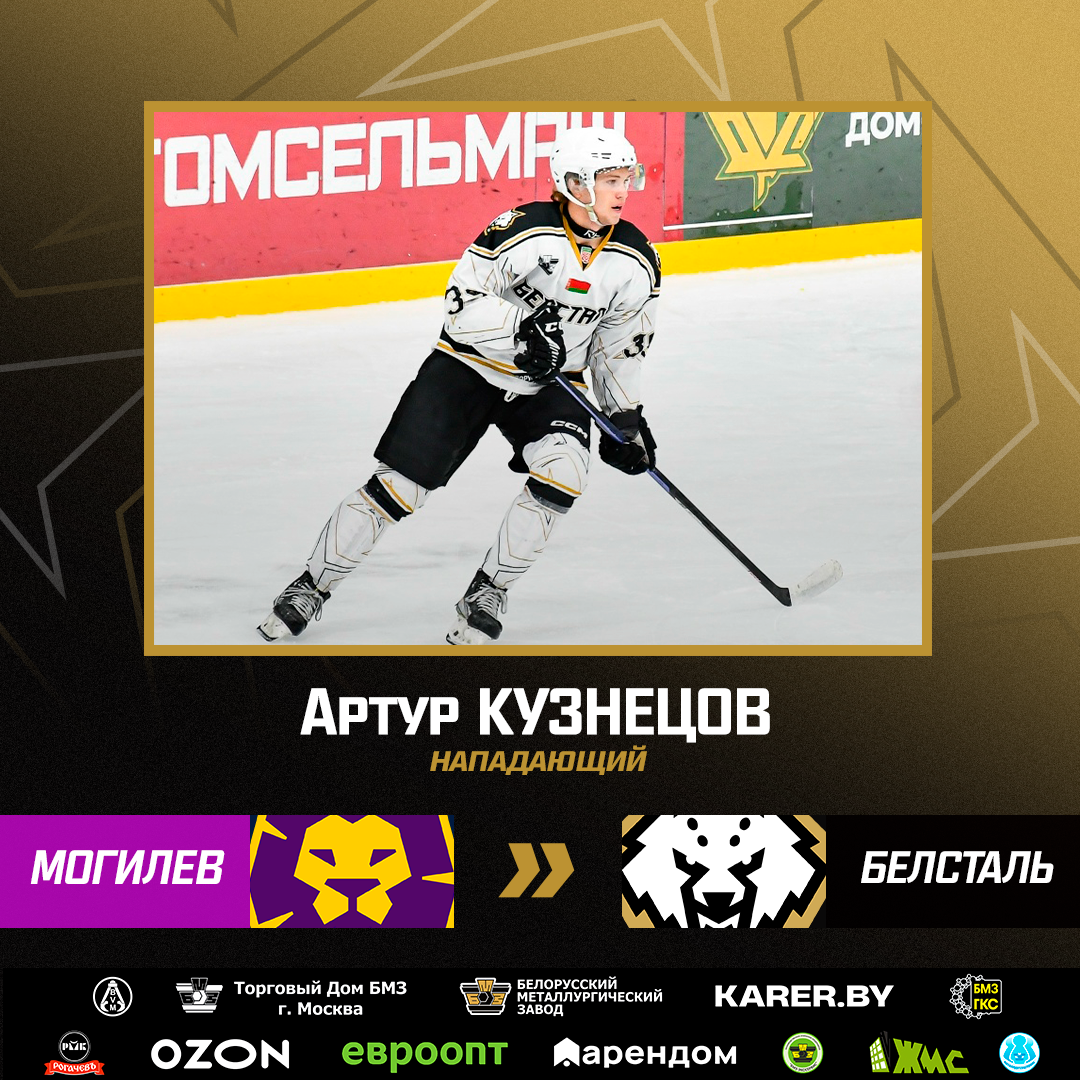 Кузнецов – воспитанник жлобинского хоккея из нашей известной семьи. Сергею приходится родным братом, Роману – двоюродным. В «Белстали» дебютировал в сезоне-2021/22. Провел в форме «сталеваров» 130 матчей, набрал 80 (28+52) очков. В прошлом сезоне побыл на легионерских хлебах: играл в чемпионате Казахстана за ташкентский «Хумо».