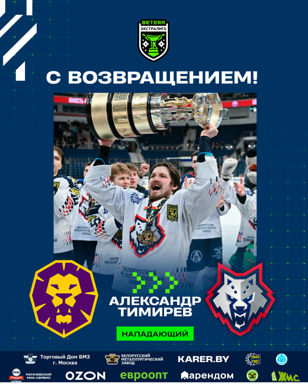 Нападающий Александр Тимирев (1994) перешел из «Могилева» в «Металлург». Взамен «львы» получили права на защитника Константина Татаренко (2001). Также в аренду в «Могилев» до конца сезона отправится форвард Иван Мурашов (2002), который в этом сезоне набрал 22 (10+12) очка в 33 встречах экстралиги.